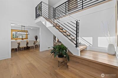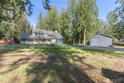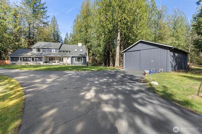 Welcome to this storybook 4.34-acre equestrian mini-ranch in desirable Maple Valley—Completely renovated this impressive 4,460 sq ft home and covered parking for 14 cars, showcases a grand entry w/striking modern floating staircase & rich hardwood floors. Gourmet kitchen is a true centerpiece, featuring newer SS appliances, quartz counters, & a dramatic waterfall island, perfect for entertaining. The expansive great room boasts a stunning 3-story tiled fireplace, soaring ceilings, & abundant natural light from skylights. This spacious home offers 5 bedrooms, including 4 upstairs with a luxurious primary suite featuring a 5-piece bath, skylight, extended hardwoods, & a private balcony w/tranquil views. Additional large bedroom on the lower level offers flexibility & comfort. Fully finished basement w/9’ ceilings provides exceptional living space w/media room, office, & additional gathering areas. Smart home technology allows remote control of garage, appliances, & thermostats for mo
