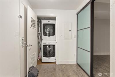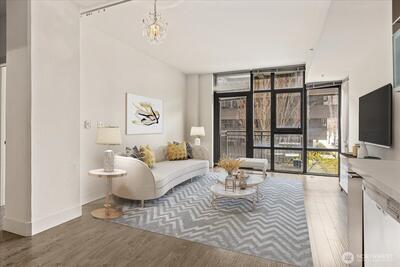 Amazing place to live- secure building with fantastic concierge services, walking distance to some of Seattle's most iconic sites and restaurants galore. Listed as a 1 bedroom, but it has a truly unique Flex-bonus room (with closet) that you can use as an office, art studio or a non-conforming bedroom? Larger than the other 1 bedroom units in the building this unit offers much, much more. Rooftop deck that is so close to the Space Needle that you feel like you can almost touch it! See the panoramic views of the Olympic Mountains, downtown Seattle skyline and the Puget Sound. Workout room, business offices, recreation room and doggie area! Secure parking space. If you want a taste of what the best Seattle has to offer, this is the place for you! See it today!