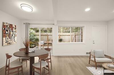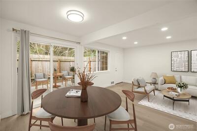 An exceptional end-unit opportunity in Newport Hills Townhomes offering added privacy, natural light, and a seamless indoor-outdoor lifestyle. Thoughtfully updated kitchen and baths pair with newer laminate flooring across the main living area, creating a clean, modern feel. The functional layout features two bedrooms with closets and an inviting living space that opens to a private, fully fenced patio—ideal for relaxing, entertaining, or pets. Enjoy the convenience of one assigned parking space plus abundant guest parking. Community amenities include a pool, tennis and basketball courts, playground, dog run, clubhouse, and expansive green space. Walking distance to award-winning Newport Heights Elementary and Chinese immersion Jing Mei School —all within the highly regarded Bellevue School District. Easy access to I-90 and I-405, and just minutes to downtown Bellevue. Walk to Newport Hills Swim & Tennis Club, an Asian grocery market, and nearby neighborhood conveniences. No Rental