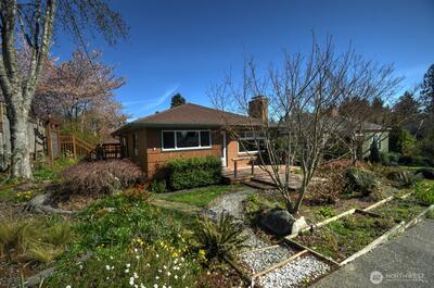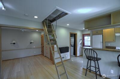 Rare: Home + permitted(!), detached ADU- in a great location. Main home clean, w/mid-century vibes, and the crown jewel studio cottage (2010) in back adds so much to this property. Real value with versatility of two turn-key living spaces in any neighborhood, let alone West Oly. Rental income, guest house, multi-generational living, and/or comfortable place to be while updating the main? Alley-accessed 2-car detached garage (also 2010) gives secure parking, w/extra storage & work space. House has usable layout, w/hardwood in one bedroom and under carpet throughout. The over-sized utility/mudroom space, tidy kitchen, and open living/dining area makes it livable as is. Or update and have an HGTV-worthy property. Enough outdoor space to enjoy and relax, but not tax your time with care. Newer heat pump for efficient temps in main, while a mini-split gives comfort in ADU-along with a cozy, and very functional wood stove. Loft space in ADU adds even more creative uses. Extensive built-ins $