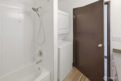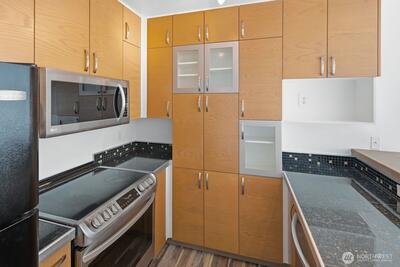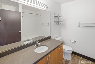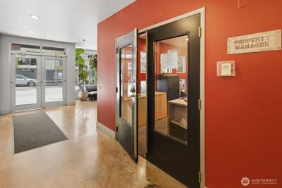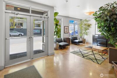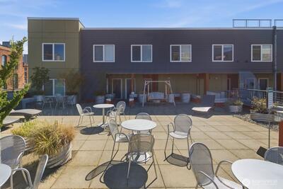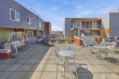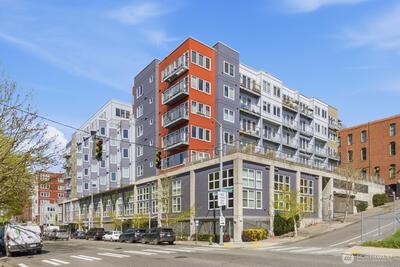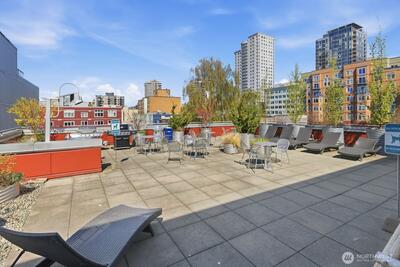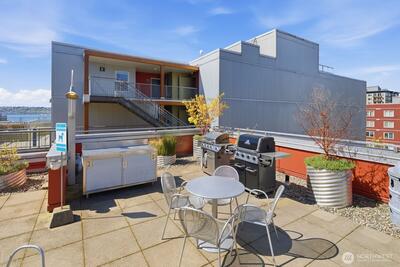 Perfect Belltown Location! SITE 17 Condo for sale with roof top deck/terrace with water view. 1 bedroom and 1 bathroom, 642 square foot with one parking assigned in the garage number 18. Kitchen with granite counter top, stainless appliances, stone and tile work. Building includes Gym and Community Room. Special Assessment paid in FULL already by seller. NO Rental Cap. Belltown offers a vibrant urban experience featuring top tier dining and shopping, scenic water park, Pike Place Market, and close access to the water front. Per Reserve Study Site 17 is currently 91.2% funded which shows a strong financial position. Virtual Staging for several pictures.