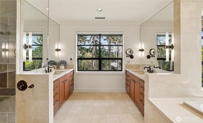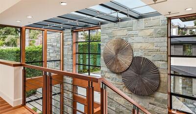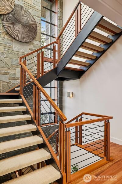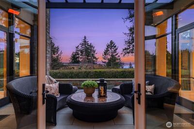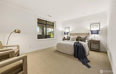 Experience a world of refined luxury and timeless sophistication in the heart of West Bellevue. Masterfully crafted by Bender Custom Homes, this architecturally striking estate is gracefully sited on over three-quarters of an acre, offering an extraordinary sense of privacy, scale, and presence. A curated palette of bluestone, metal, cherry wood, and mahogany creates a rich interplay of warmth and modernity, while dramatic walls of glass capture breathtaking western sunsets and bathe the interiors in natural light. Designed for both grand entertaining and elevated everyday living, the home seamlessly extends outdoors to a spectacular covered living pavilion complete with a fireplace and overhead heaters, delivering a true year-round indoor-outdoor lifestyle. The grounds are equally captivating—lush, serene, and beautifully composed with a private garden and a detached guest house that offers exceptional flexibility for guests, multigenerational living, or a private retreat. Every det