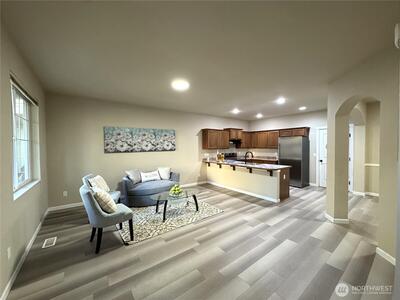 Affordable living in NE Renton Highlands. The home offers 3BR 2.5 BT with a Luxury package. With new flooring, this beautifully updated home offers modern living in a fantastic, convenient neighborhood. The open-concept main floor features engineered hardwood floors, abundant natural light, and an open kitchen with counters and stainless-steel appliances. The upper level includes a master suite with vaulted ceilings and a luxurious 5-piece en-suite. Comfortable with well-sized bedrooms. The garage at the back of the house offers multiple parking spaces. Exceptionally well-maintained, spotless, and truly move-in ready. With convenient access to I-405, shopping, dining, parks, and commuter routes to Bellevue, Seattle, and Hazen Snr High.