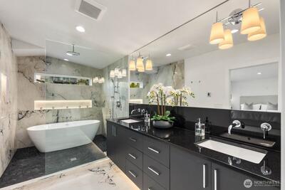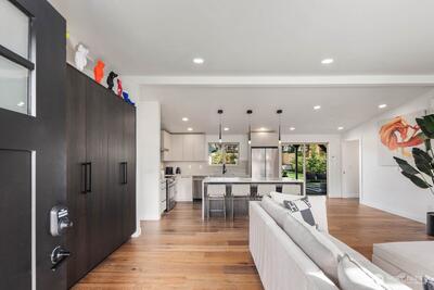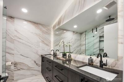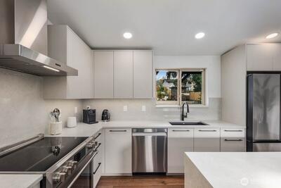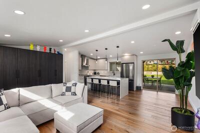 Welcome to Kennydale living at its finest! This fully renovated 1,630 sqft rambler offers 3 beds & 1.75 baths with top-tier finishes throughout. Vaulted ceilings and a bright open layout lead to a stunning chef’s kitchen featuring custom cabinetry, quartz counters, waterfall island, full slab backsplash & SS appliances. Luxurious primary suite addition boasts a spa-inspired 5-piece bath with freestanding tub, custom tile shower, heated floors & walk-in closet with built-ins. Spacious bedrooms plus a beautifully updated bath with dual vanities & oversized tile shower. Upgrades include metal roof, 488 sqft addition, new siding, paint, millwork & engineered hardwoods. Enjoy a large yard with firepit, covered patio, RV parking & extended driveway. Prime location near highways, schools & airport. Tour today!