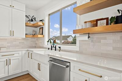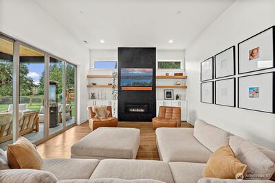 Luxurious Northwest contemporary shines in this stunning setting on 1.2 acres. Home sits on the edge of Sunrise in a quiet neighborhood with no HOA. Gorgeous chef’s kitchen opens to covered outdoor living, complete with an outside fireplace. Large main floor office has walk-in closet, bathroom access and a beautiful pond view.. multigenerational living? Home perimeter is fully fenced, perfect set up for dogs including a DELUXE dog washing station in the garage! Professionally installed exterior roofline lighting (Gemstone Lighting) provides customizable smart-controlled lighting for holidays, security and aesthetics. Primary bedroom has lovely views with a magnificent bathroom with freestanding tub. 3-car garage and plenty of room to build a detached shop. Many upgrades and high end finishes. Must see this amazing piece of heaven.