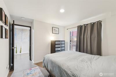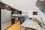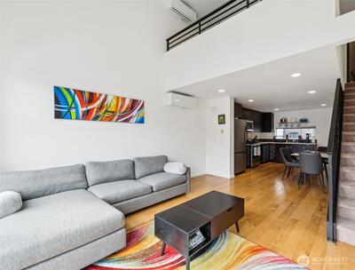 Architecturally distinctive modern townhome by PB Elemental, designed with clean lines, abundant natural light, and a seamless open-concept living experience. Showcasing a sleek, open-concept layout filled with natural light from expansive floor-to-ceiling windows, this home blends contemporary style with everyday comfort. Thoughtfully designed with a mix of concrete and hardwood floors, it features modern fixtures and refined finishes throughout. The kitchen is equipped with a gas range, stainless steel appliances, and slab quartz countertops, flowing effortlessly into the main living space - ideal for both relaxing and entertaining. A versatile loft-style primary suite adds architectural interest and flexibility. Enjoy year-round comfort with efficient mini-split systems, along with the convenience of whole-home networking wiring. The lower level offers a sliding door that opens to a fully fenced private yard and patio, perfect for outdoor gatherings or quiet retreats. Additional hig