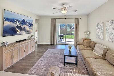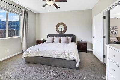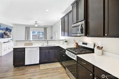 Looking for a 1 story home in Enumclaw with a view of Mt. Rainier and a fully fenced yard? This 3-bedroom, 2 bath "like new" rambler in the beautiful Suntop neighborhood might be exactly what you’ve been searching for. This 1,480 sq ft home offers easy main level living with no stairs. The layout is open and bright, with a comfortable living room, large dining space, and an open kitchen that makes everyday life simple. Big windows bring in tons of natural light and give the home a warm, happy feel. The primary bedroom is spacious and private, with a 5 piece bathroom and walk-in closet. Two more bedrooms and a full bath give you space for guests, a home office, or hobbies. Step outside to a large extended patio and fully fenced low maintenance backyard. The covered back patio is perfect for BBQs, morning coffee, or relaxing at the end of the day and taking in the Mt. Rainier view. There’s plenty of driveway parking plus a 2-car garage for cars, storage, or gear. Living here means en