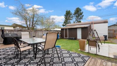 Charming one-level home offering 3 bedrooms and 1.5 bathrooms, thoughtfully maintained and full of potential. Enjoy a spacious layout with a large family room perfect for gatherings and everyday living. The galley kitchen flows into a generous pantry/utility space, providing ample storage and functionality. The property features a large 2-car garage plus an additional enclosed garage/shop space, ideal for hobbies or extra workspace and lots of shed space. Step outside to a fully fenced backyard with a large back deck perfect for entertaining, along with a wide gate for convenient alley access. Located close to town, this home combines comfort, versatility, and opportunity.