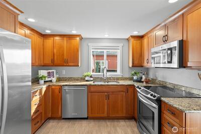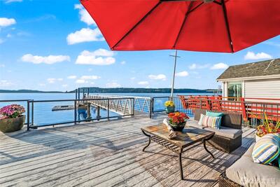 At Titlow Beach, the water isn’t just your view, it’s your foundation. This rare offering includes THREE charming abodes built directly on pilings over the Sound, connected by expansive decks that invite gatherings for magical sunsets, and the simple joy of life at the water’s edge. Live in one, plenty of space for guests, or VRBO the others. A commercial-grade DEEP WATER DOCK, (that can never be built again) extends your backyard further into the Sound, for boating, crabbing, fishing or sailing. 1538 is an adorable, renovated 2 bed/2bath rambler that feels spacious and open. 1542 is 2 bed/1 bath with loft, solar and a front row seat to the Sound PLUS a 1 bed/1 bath ADU. Tideland ownership stretches far beyond the property borders. 2 parking spots above 1542, 2 more in the lot to the north - 4 total. Paddle next door to the Narrows Marina for a pint at Narrows Brewery then dinner at Boathouse 19 or simply settle into the rhythm of the tide beneath your feet. Casual, advent