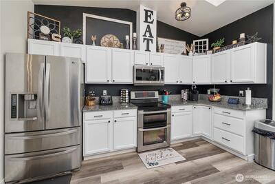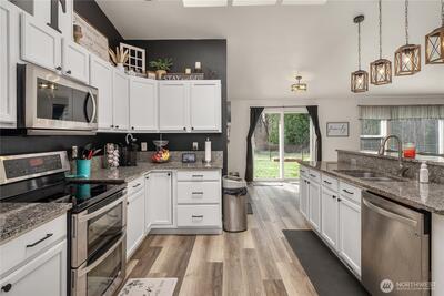 Welcome to peaceful country living in Graham! This beautifully updated rambler sits on nearly 10 useable acres, offering the perfect blend of comfort and space. Featuring 4 bedrooms and 2 bathrooms, the home showcases vaulted ceilings, an updated kitchen, new flooring and carpet, fresh interior paint, new light fixture, updated vanities, and refreshed trim throughout. Step outside to enjoy established fruit trees and wide-open land with endless possibilities. A spacious shop for your toys, storage, or hobbies. Whether you are looking for room to roam, garden, or simply relax, this is the home for you!