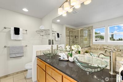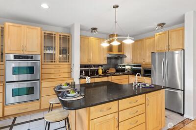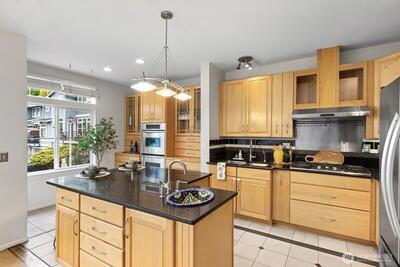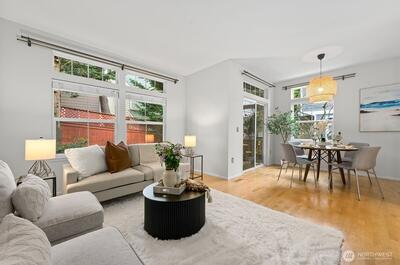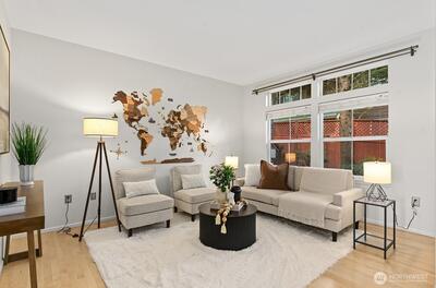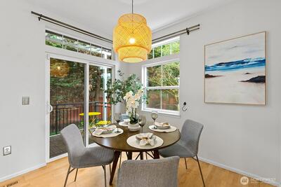 Welcome to this stunning, light-filled modern end-unit townhome in the heart of Rose Hill! Ideally located just minutes from Kirkland’s vibrant shopping, dining, parks, and waterfront, this home offers the perfect blend of style, comfort, and convenience. Beautifully updated 3-bedroom, 2.5-bath home featuring spacious living areas, including a great flex area off kitchen—perfect for entertaining, everyday living or dining. Bright and cheery chef’s kitchen complete with stainless steel appliances and hood, an oversized island with chef’s sink, and thoughtful design. Enjoy indoor-outdoor living with two private decks—ideal for relaxing or hosting guests. Harwood flooring adds warmth and sophistication. 5-piece primary bath. Lower level has large rec room or could be used as bedroom/flex area, office upstairs could potentially be used as bedroom. Newer H20 heater 2022, smart washing machine 2022, smart top control dishwasher 2023. Attached 2-car garage and additional driveway pa