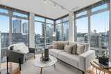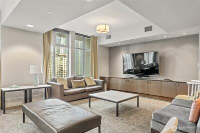 Boasting an expansive 1,186 sqft of luxury living space, 2 private balconies and 2 dedicated storage units, this move-in ready, 2 bed, 2 bath SE corner residence at The Cosmopolitan is a rare find! Perched high on the 25th floor, enjoy an unobstructed view through the floor-to-ceiling windows, and walk to all conveniences (walk score 100). Bright, open layout features central A/C, updated flooring (carpet-free throughout), central hot water (no bulky hot water tank to maintain), stainless steel appliances with gas stove, primary suite with oversized walk-in closet...and much more. Amenities include 24-hour concierge, fitness center, guest suite, spa with sauna, business center, and a rooftop deck showcasing the breathtaking views of the Space Needle, Lake Union, and Puget Sound. No Rental Cap.