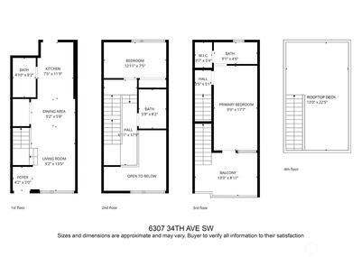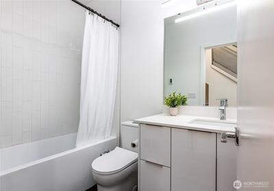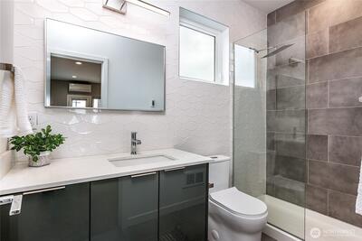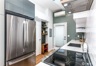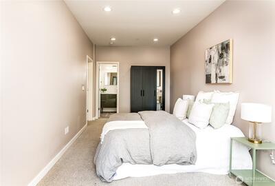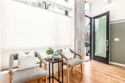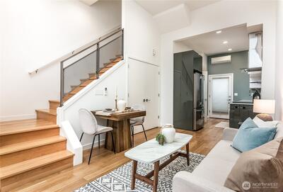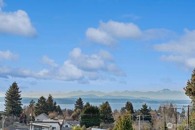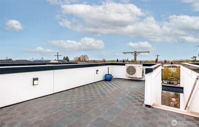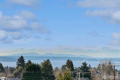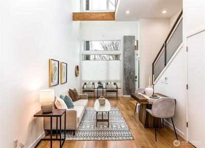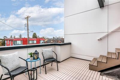 Experience modern West Seattle living in this sleek townhome where soaring entries and exposed iron and wood beams create an industrial-chic masterpiece. The main level radiates with an open, light-filled floor plan, boasting towering ceilings and expansive floor-to-ceiling windows that bathe the space in natural light. At the heart of the home, a designer kitchen features brand-new appliances, flowing seamlessly into the living area with a convenient guest powder room. Designed for ultimate privacy, each upper floor hosts its own dedicated suite. The primary retreat offers a walk-in closet and a private east-facing deck—the perfect sanctuary for sun-drenched morning coffee. For ultimate entertaining, head to the upper rooftop deck that delivers unbeatable 360-degree views stretching from the Puget Sound and Olympic Mountains to Mt. Rainier and the iconic Seattle skyline. Tucked away on a charming residential street, this home perfectly blends high-end craftsmanship with quiet urba