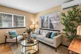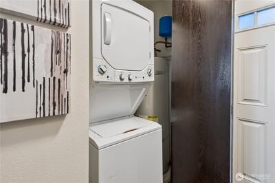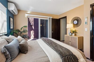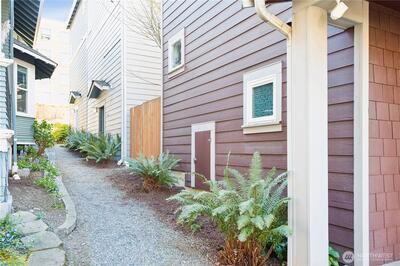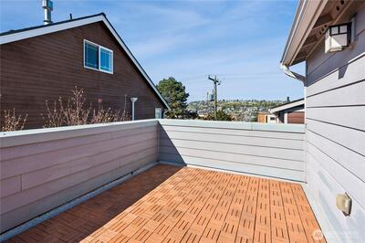 A rare Eastlake find that feels like a private retreat. Tucked along one of the neighborhood’s most coveted streets, this in-city cottage-style townhouse blends charm, function, and an unbeatable location. Inside, hardwood floors, designer tile, A/C and a bright, efficient layout make the home live larger than expected. The main-level bedroom is its own private escape with an en-suite bath, brand new stacked washer and dryer, and direct access to a fully fenced backyard with a treehouse feel, low-maintenance landscaping, and storage shed. Upstairs, the stylish kitchen features slab granite countertops, stainless steel appliances, a newer dishwasher, updated sink hardware, and a new garbage disposal, all flowing seamlessly into the living and dining areas, plus a convenient half bath. The top level offers flexible loft space ideal for a home office, guest space, or creative setup. Bathrooms have been thoughtfully refreshed with newer toilets. Finish the day on the rooftop deck with pe