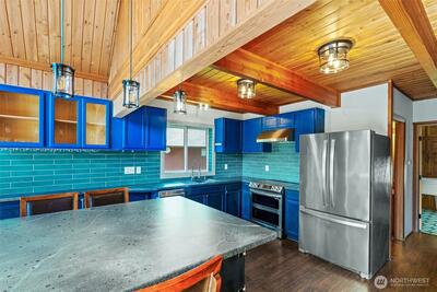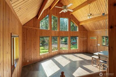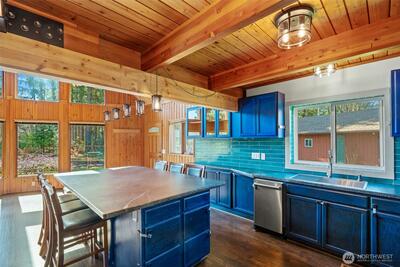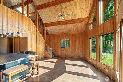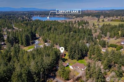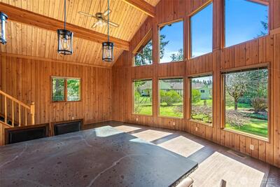 Stunning custom cedar home with expansive shop on a shy acre in the peaceful Offut Lake community. Soaring ceilings with exposed beams and wood paneling are illuminated by the sprawling wall of windows upon entry. Beautifully redesigned kitchen built with entertaining in mind features large center island with wrap around seating, SS appliances and tile backsplash. Primary bedroom loft with ¾ bath and walk in closet. Bonus room in the back of the home with wood stove can be used as a second living area, guest room or as the space needed to satisfy your lifestyle needs. Heated 52’X24’ shop with workbenches perfect for the woodworker, car collector or any hobbyist that needs more space. Shop built with 2 sets of garage doors offers the flexibility to separate the space into different areas. Stretch out in the fully fenced level backyard and let your garden dreams come to fruition this spring! Recent updates include full kitchen remodel, net metered solar energy system, laminate floor