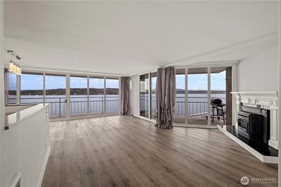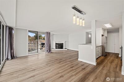 Perched high above the city in Rainier Valley, this top floor, corner unit boasts sweeping Lake Washington views from every room and a fresh, modern interior. Featuring a beautifully renovated kitchen with new cabinetry, quartz countertops, and stainless steel appliances—perfect for everyday living and entertaining. LVP flooring runs throughout the home, creating a clean, cohesive look while maximizing natural light from the large windows that frame the stunning lake views. The open layout provides comfortable living and dining spaces, while the elevated position of the unit allows you to enjoy the scenery from nearly every angle. Conveniently located near parks, shopping, dining, and transit, this move-in-ready home offers an excellent opportunity to enjoy vibrant South Seattle living with style and comfort.