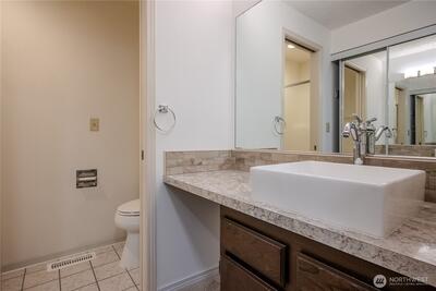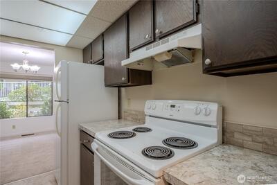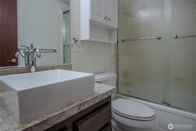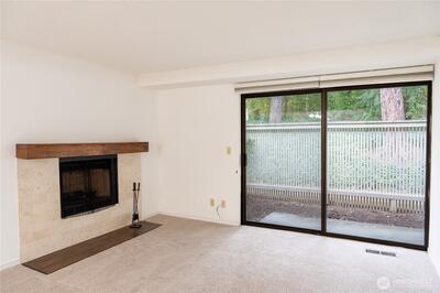 Refreshed and move-in ready, this clean 2 bed / 1.75 bath condo offers comfort, convenience, and a fantastic location. Tucked within a quiet enclave of well-maintained buildings, this ground-level unit features a spacious living and dining area with a cozy wood-burning fireplace—perfect for relaxing evenings. Step outside to your private patio, surrounded by a peaceful backdrop of mature trees.The primary suite includes an ensuite ¾ bath, generous closet space, and room to comfortably accommodate your wardrobe. 2nd bedroom is perfect for additional living space or office space. Fresh interior paint and brand-new flooring throughout create a bright, modern feel and a true blank canvas for your personal style.Enjoy a range of community amenities including a rec room, outdoor pool, and sauna—ideal for unwinding year-round. Located less than a mile from Juanita Beach Park, with easy access to local dining, shopping, and everyday conveniences, this home offers the best of both tranquil