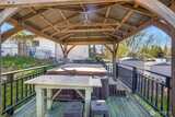 Welcome to this charming farmhouse set on just shy of an acre, offering the perfect blend of timeless character and modern updates. Thoughtfully renovated, the kitchen shines with new cabinetry, butcher block countertops, and stainless-steel appliances, while rich hardwood floors flow throughout, adding warmth and style. The versatile lower level expands your living options with a spacious recreation room or home office, a 3/4 bath, and an additional finished room ideal for a fourth bedroom or guest space. A functional utility/mud room provides convenient access to the patio and expansive deck—perfect for entertaining or unwinding beside the pool or soaking in the hot tub. This property is a dream for hobbyists and outdoor enthusiasts alike, featuring an impressive 1,080 sq ft shop with a durable metal roof and reinforced flooring, an RV carport, multiple outbuildings, a covered woodshed, and even a greenhouse. Enjoy peaceful country living with the added benefit of a prime