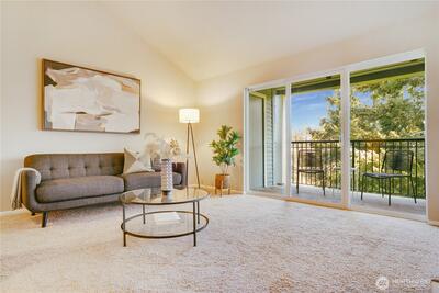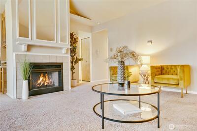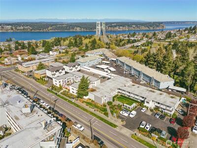 Top-floor living surrounded by lush greenery, this inviting condo is your peaceful retreat in the heart of it all. Sip your morning coffee on the private balcony and take in tranquil views of Veterans Park, with a peek toward the iconic Narrows Bridge corridor. Vaulted ceilings and an open-concept design create a bright, airy feel that lives larger than expected. Enjoy peace of mind with gated entry, a secure lobby, and assigned parking plus guest spaces. Inside, you’ll find a cozy fireplace, a dedicated dining area, in-unit washer and dryer hook up, balcony storage, and a private bath in the primary suite; everything you need for comfortable, easy living. Perfectly positioned for commuters with quick access to Hwy 16 and I-5, making trips across the bridge or north and south a breeze. Just minutes to Titlow Park, scenic trails, local dining, shops, and the Tacoma Little Theatre for a touch of culture. With affordable HOA dues and a low-maintenance lifestyle, this is your opportunity
