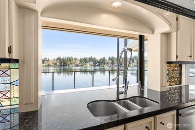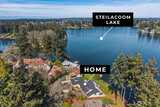 Remodeled home on about 100 feet of historic LAKE STEILACOOM, a rare find on OPEN WATER. This unique and architecturally significant home by Alan Liddle was recently renovated w/ impeccable style and taste. 4 Bedrooms with 2.75 baths. Massive NEW DOCK; about 550 sq feet. Living areas have walls of glass overlooking the lake; Living room w/ gas FP; dining room w/ buffet; kitchen w/ island; nook and large pantry; sitting area. LAKESIDE Primary suite w/spa-like bath; custom tile work; marble; towel warmer and SAUNA. Lower-level rec room w/ new gas fireplace. New stainless steel DOG WASH. MASSIVE large new deck w/ outdoor vinyl for carefree living. Added value comes from new custom millwork, new carpet, new systems like HVAC (AIR CONDITIONING), newer ROOF, and new windows, freshly painted. Over HALF ACRE gives room for extra parking or even a possible sports court! This is a rare blend of location on the lake, updates, and floor plan. A rarity in the market.