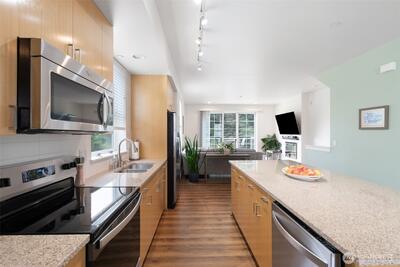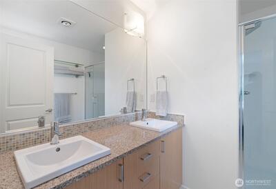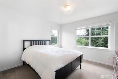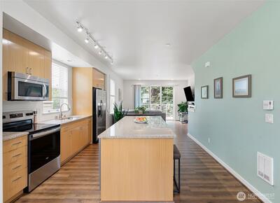 Best location in the Lake Boren Townhomes community, wonderful lake views from the bedroom and the deck, peaceful and private green belt, corner unit allows for tons of natural light, plus attached 2 car tandem garage makes this unit stand out from the rest. Kitchen is ready for your master chef, huge island, stainless steel appliances, and plenty of space to flex your cooking skills. Head upstairs for 2 large bedrooms with 2 bathrooms on opposite ends and convenient laundry in the middle. The community features private beach access, walking trails, BBQ and firepit area. All of this within walking distance to your groceries, restaurants, coffee, parks and library. Immaculately clean and ready to move in!