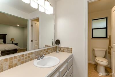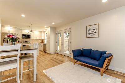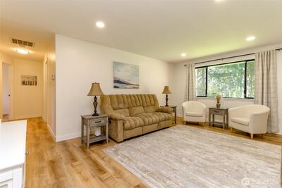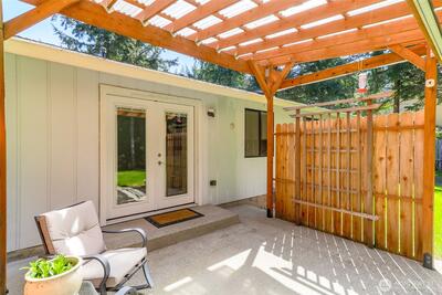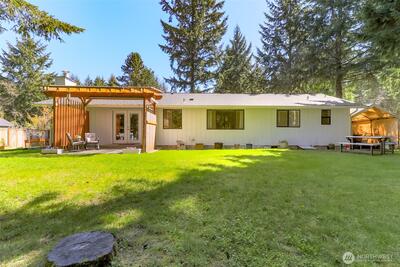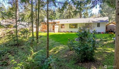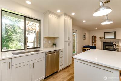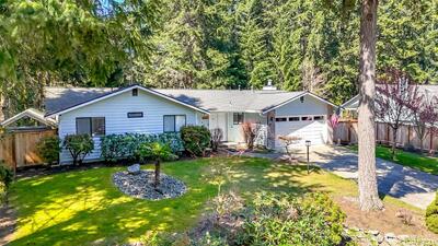 Beautifully remodeled 3-bedroom, 1.75-bath home in the heart of Gig Harbor. Situated on a spacious 0.367-acre lot, this property offers a peaceful setting with a thoughtfully updated, on-trend backyard. Enjoy a private trail just across the street that connects throughout the neighborhood. Enjoy neighborhood amenities including tennis and pickleball courts just moments away. Inside, you'll find fresh interior paint, new LPV flooring, updated trim and modern recessed lighting throughout the main living areas. The fully remodeled kitchen is light and bright with white cabinetry, quartz counter tops, stainless steel appliances and a clean, timeless design. the full bathroom has been remodeled with new vanity, fixtures and lighting. Stay comfortable in the lovely one story home year round with air conditioning as well. Mature landscaping surrounds the home and the covered patio creates the perfect space to relax or entertain. Spend evenings on the patio, morning walks on the private trail