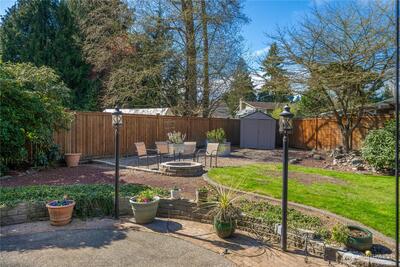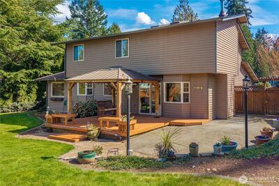 Tucked away on a quiet cul-de-sac, this well-maintained 4-bed home offers a rare combo of space, functionality, & a beautiful private, park-like setting, complete with a new roof for added peace of mind. A covered front porch & charming window planters create inviting curb appeal from the moment you arrive. Inside, the main level is filled with natural light from large windows & the living areas center around a gas & wood-burning fireplace insert, perfect for cozy PNW evenings, while the dedicated dining space connects seamlessly to the kitchen. A mudroom adds everyday convenience, & the spacious garage provides valuable storage. Upstairs, the primary offers a private retreat with its own bath & generous space. Additional beds provide flexibility for guests, home office, or multi-purpose living. The backyard truly sets this home apart - private, lush, & thoughtfully designed for year-round enjoyment. A covered deck & gazebo create ideal spaces for relaxing/entertaining, complemented by