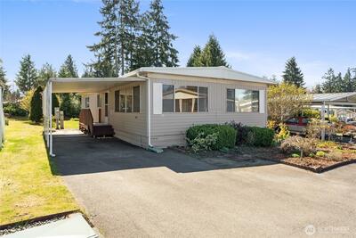 Welcome home to Belmor Park- a gated 55+ gem in Federal Way where life feels a little sweeter. Enjoy the coveted 9 hole member only golf course just steps away, birdwatching from your deck & friendly waves from neighbors. This vintage 2-bed, 2-bath sweetie offers a bright open layout & comfy living space perfect for settling in. Relax in your semi-private backyard w/ southern facing garden beds, or enjoy the many community perks! Indoor pool, spa, sauna, fitness, clubhouse, crafts, dog park & fun social events. Close to shops, dining & light rail. Carport, shed & more- Easy living awaits. Life is Good here!