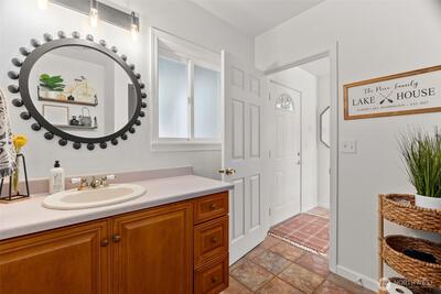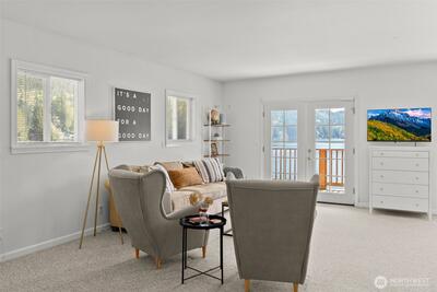 Get your lake place now and be ready for summer at beautiful Summit Lake! This rare low-bank waterfront home captures expansive southwesterly views and sits at the ideal end of the lake for sun, space, and a true getaway feel. Bright and inviting, the main level features an open kitchen and living area flowing seamlessly to a huge deck, perfect for entertaining or soaking in long summer evenings. Thoughtfully updated with a new roof (2022), heating & cooling system, fresh interior paint, and modern fixtures, this home is move-in ready, and may even be sold furnished (with the right offer) for a turnkey experience, or instant Airbnb investment property. The upper-level suite offers a private retreat with its own covered deck and stunning lake views. While the septic (new in 2021) is permitted for one bedroom, the home lives larger with a finished second room down, and flexible upper space that could be divided for additional sleeping areas. Enjoy easy access to the water with minimal st