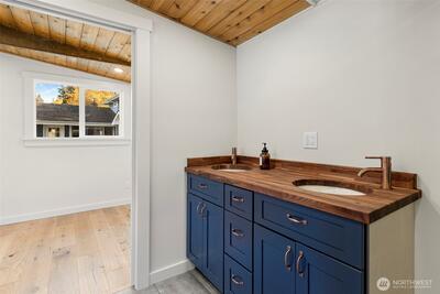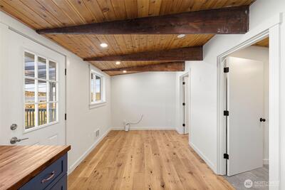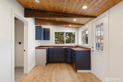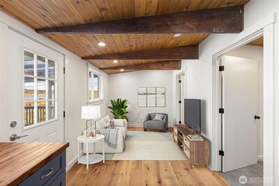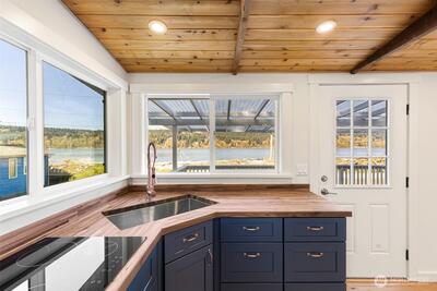 Discover the perfect blend of modern updates and timeless waterfront charm in this beautifully remodeled beach cabin, featuring 25 feet of private shoreline and valuable tideland rights. Though compact in size, the thoughtfully designed layout lives larger than expected, offering both comfort and functionality. The open-concept living space flows effortlessly onto a water-facing deck - an ideal setting for entertaining, unwinding, or soaking in breathtaking views. The updated kitchen showcases stylish finishes and contemporary fixtures, while the bathroom has been transformed into a serene, spa-inspired retreat. Additional highlights include a 600 sq ft unfinished basement, offering excellent storage or future potential for expansion, along with direct water access and the rare benefit of tideland rights - enhancing your ability to fully enjoy the waterfront lifestyle, from beachcombing to launching kayaks right from your own property. Whether you're searching for a full-time
