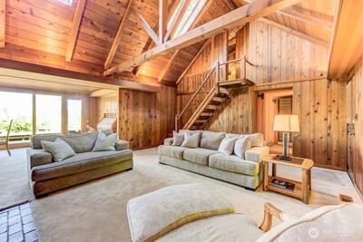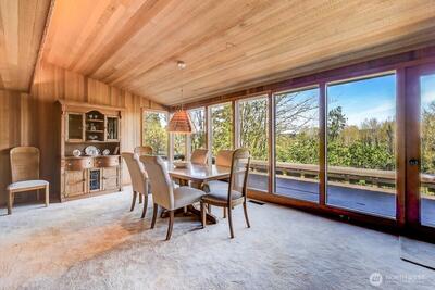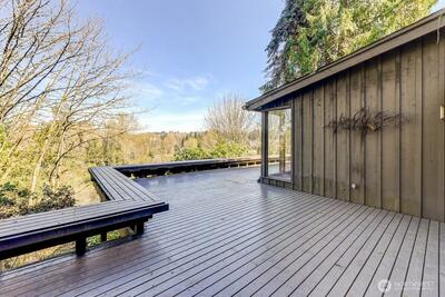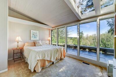 A rare 1+ acre riverfront property with access to Lake Washington. Tucked along the Sammamish River, this 3-bed, 2.5-bath home offers sweeping water views, and a lifestyle you won’t find hardly anywhere else in Kenmore. Enjoy an expansive level deck overlooking the river —perfect for morning coffee, leisure lunches, happy hours, delicious dinners, evening sunsets, and year-round entertaining. Inside, the open kitchen and family room flow seamlessly to the outdoors with the floor to ceiling windows & door, creating a bright, inviting living space, enjoy the comfy living room with large wood burning fireplace, primary bedroom has floor to ceiling windows and a door that opens onto the deck. Upper bedroom can be used a bedroom or an office. The lower level features a guest suite with separate living area, ideal for multi-generational living, rental income, or a private home office. With over an acre of land, this property offers potential to subdivide (buyer to verify), making it