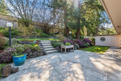 Tucked into a peaceful Fircrest cul-de-sac, this well-maintained one-story home offers effortless living with a thoughtfully designed layout on a corner lot. Gorgeous hardwood floors flow throughout the home, adding warmth and timeless appeal, while major system updates include a brand new roof, newer furnace & water heater. The open kitchen & dining area seamlessly connect to double doors that lead to a serene backyard oasis that is perfect for indoor/outdoor living & entertaining. A striking see-through gas fireplace creates an elegant focal point between the living & dining areas, enhancing both ambiance & flow. A versatile bonus room offers flexibility for a media room, home office, or gym. Spacious two-car garage and large driveway with RV parking. Step outside to unwind on the back patio in the late afternoon shade, surrounded by the soothing sights and sounds of birds flitting through the trees. Seasonal color unfolds throughout the year with two Japanese Maples, a flowering che