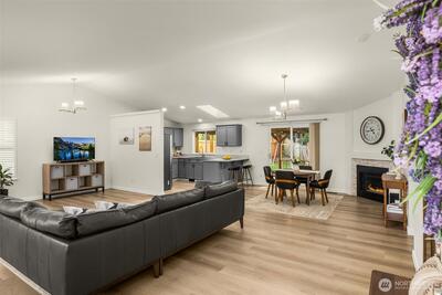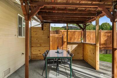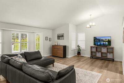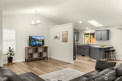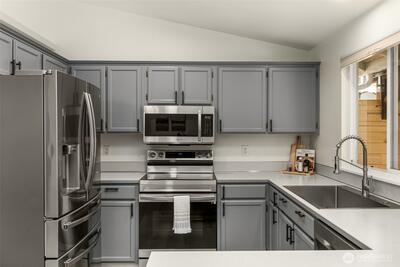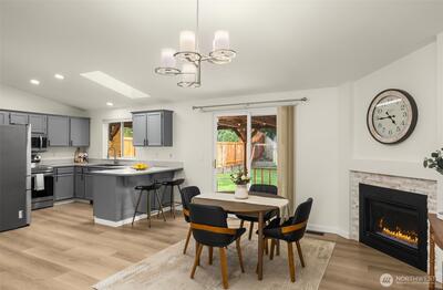 Beautifully updated and move-in ready, this home offers the perfect blend of comfort, space, and lifestyle with NO HOA! Soaring vaulted ceilings and a sun-filled bay window create a bright, inviting living area, while the open kitchen flows seamlessly into the family room, ideal for everyday living and entertaining. The spacious primary suite features a walk-in closet and a private bath with double sinks. Step outside to a fully fenced backyard with a covered patio, perfect for relaxing or hosting year-round. Expanded driveway and side access offer rare parking for up to 7 vehicles, RV, or boat. Enjoy peace of mind with major updates, including newer roof, heat pump, furnace, tankless water heater, flooring, and new stainless-steel appliances. Professionally landscaped with privacy trees, custom gates, retaining wall, and outdoor features designed for enjoyment. Conveniently located minutes to Lake Wilderness Park, trails, shopping, dining, and Hwy 18, in the award-winning Tahoma Sc