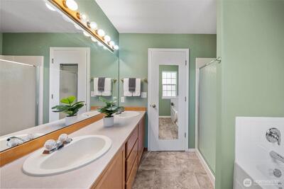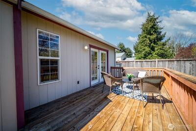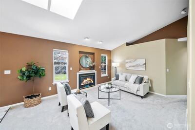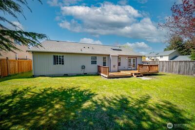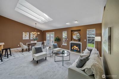 Located in the desirable Kempton Downs neighborhood, this 3-bedroom, 2-bath rambler offers 1,742+/- sq ft of comfortable single-level living on a corner lot within the Olympia School District. The open floor plan features skylights that fill the main living areas with natural light, creating a bright and welcoming atmosphere. The spacious primary suite includes French doors, a private en-suite bathroom with separate shower and soaking tub, for a relaxing retreat feel. A versatile den/office provides flexible space for work or hobbies or additional flex space, while the functional layout offers generous living areas throughout. Enjoy a partially fenced backyard with deck, perfect for outdoor living and entertaining. Complete with a 2-car garage and conveniently located near schools, shopping, and everyday amenities, this home offers comfortable living with opportunity to personalize!