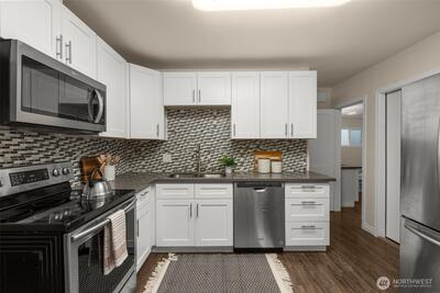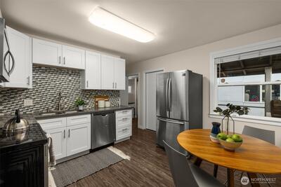 Welcome Home to Victory Heights! This light and bright North Seattle home has easy access to SR 522, public transit, UW and is close to the shopping, dining and the entertainment of Northgate. Recently renovated, this charming home features a beautiful kitchen with matching appliances, a large primary bedroom and thoughtful upgrades throughout that include; newer flooring, paint and nicely appointed bathrooms. Relax and sip your morning coffee on the cozy covered patio or walk down the road to enjoy a trail through nature that leads to Thornton Creek.