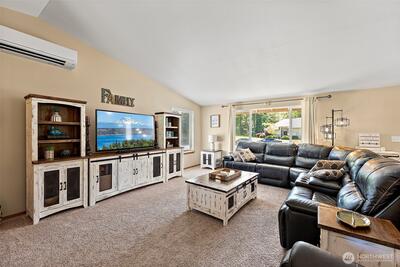 Dreaming of peaceful country living with modern comforts? A charming rambler in the gated Whitewater Estates community on a lovely 1-acre lot. Open concept & vaulted ceilings! 4-bed, 2-bath home lives large. Enjoy the split floor plan with the primary bedroom on one end & the other 3 bedrooms on the opposite end of the home. The primary bedroom has a walk-in closet & large 5-piece ensuite. Enjoy morning coffee on the large back patio or have friends over for a BBQ overlooking your 1-acre retreat! Enjoy the cold A/C on those warm summer days. Miles of walking trails, beach access to the Nisqually River, & outdoor equestrian arena is available to the community. Close to Yelm & just 20 min to JBLM.