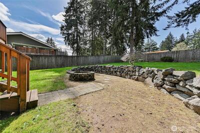Welcome to this well-maintained 3 bed, 2.25 bath split-entry home tucked away on a quiet cul-de-sac in the desirable Twin Lakes area of Federal Way. Offering 1,620 sq ft, this home features warm, inviting hardwood floors and light-filled living spaces that create an immediate sense of comfort. The Tuscan-inspired kitchen showcases rich wood cabinetry, stone-look counters, stainless steel appliances, and a cozy dining area with easy access to the expansive deck. Enjoy seamless indoor-outdoor living with a massive entertaining deck complete with a natural gas hookup—perfect for year-round BBQs. The fully fenced backyard is a private retreat, featuring a custom fire pit area surrounded by a rock wall, ideal for gatherings and relaxing evenings. The spacious lower-level bonus room provides flexible living space for a media room, home gym, or play area. Updated bathrooms and pride of ownership throughout make this home truly move-in ready. Conveniently located near Twin Lakes shopping, an
