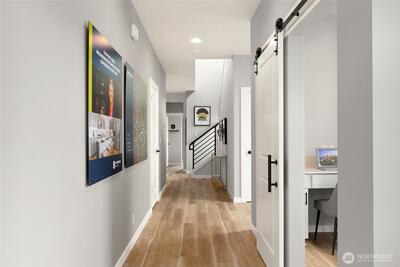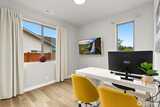 Welcome to Meristone, a Beautiful New Home community by Conner Homes, your trusted local builder! This Maple plan offers a rare opportunity to fully customize your home and bring your vision to life. Step onto the charming covered porch and into an inviting foyer, where a flexible tech space with a stylish barn door creates the perfect spot for work or study. The open-concept main level is designed for connection and comfort, featuring a bright kitchen with quartz countertops that flows effortlessly into the dining area and expansive great room. Sliding glass doors open to a patio, creating seamless indoor-outdoor living—ideal for morning coffee, summer dinners, and entertaining friends. A main-level bedroom with a ¾ bath offers versatility as a home office, guest suite, or multi-gen living space. Upstairs, a spacious loft provides room to relax, work, or play, along with a convenient laundry area, two additional bedrooms, and a luxurious primary suite designed as a peaceful retreat