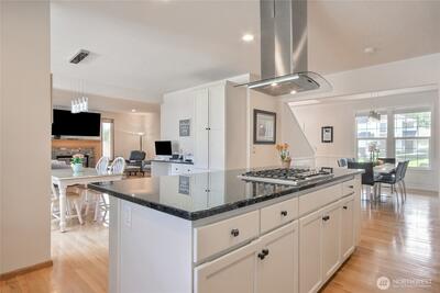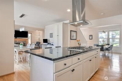 Location! Rare opportunity to own an updated 3,612 sq ft home with spacious 5 bdrms, 3 full baths, Bonus room, Dan/Office(or sunroom) & 3 car garage(EV charging station). Priced to sell! Welcoming at huge covered front porch. Double front door opens to entryway, soaring two-story ceilings & abundant natural lights in, Grand spindle staircase leads to 2nd level, 9ft ceiling in main level. Solid wooden doors. Updated lights. The Formal Living rm has gas FP, wall of floor to ceiling windows, Formal Dining rm look out cozy porch&peaceful front yard. Gourmet kitchen W/famous named appliances (stays), Wall oven, huge Island w/gas cooktop. HW floorings throughout.The oversized primary bdrm has a sitting area, large walk-in closet & beautifully updated 5pcs en-suite bathroom. The main level includes a versatile multi-generational suite & a full bath. Gas FP in Family rm. The spacious laundry room has a sink&W/D stay. Spacious & leveled backyard w/huge patio that provides outdoor entertainment