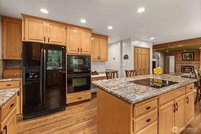Set on nearly an acre on a quiet Redmond street, this private estate invites you to slow down, spread out, and truly live. Imagine summer evenings on the expansive patio—grilling and entertaining at the outdoor kitchen, gathering by the outdoor fireplace, and enjoying the peace and privacy of your own park-like setting. Inside, soaring vaulted ceilings fill the home with natural light, while a flexible layout offers space for multigenerational living, work-from-home, or long-term versatility. Crafted with countless custom features and thoughtfully maintained, this home allows you to curate your own private retreat—where space, privacy, and possibility come together. The detached workshop opens the door to endless potential—whether envisioned as a studio, guest space, or dedicated office. Surrounded by mature landscaping and set apart from the ordinary, this property offers a rare blend of seclusion and convenience, just minutes from Redmond’s core. Just minutes away from new