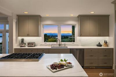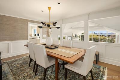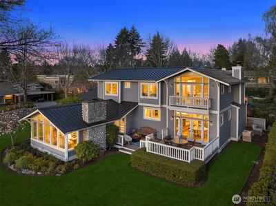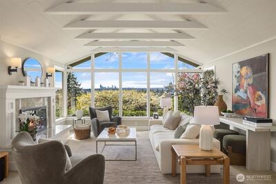 This cherished Medina Heights home is defined by its extraordinary location, sweeping views, abundant light, and timeless architectural presence. Known affectionately as a“Treasured Gem” of the neighborhood, it comes to market for the first time in 30 years, offering a rare opportunity to own a residence of remarkable character and exceptional livability. Thoughtfully updated systems and elevated finishes complement a home that remains modern over time. Here, coveted location, beautiful condition, and refined style come together. The property itself is a true showcase, with expansive front and back lawns that create room for play, relaxation, and entertaining. From nearly every vantage point, enjoy views of the lake, Olympics, unforgettable sunsets, and the Seattle skyline. Old-growth maples & mature oak trees lend a sense of history , while the home’s tasteful additions reflect a deep respect for its roots. The floor plan is exceptionally versatile, with two main-floor of
