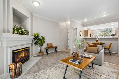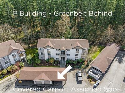 Welcome to Sundance at Klahanie—where convenience, lifestyle + community come together in one of Sammamish’s most sought-after neighborhoods. Ideally located, this 1-level condo offers easy living w/a highly desirable layout + the bonus of 2 assigned parking spots —your own rare 1-car garage w/storage, & a covered carport just steps from the front door. Freshly updated throughout, this home shines w/all new neutral paint + brand new flooring for a modern feel. Meticulously maintained over the past 25+ yrs, it offers true move-in ready confidence. The kitchen includes tiled countertops, abundant maple cabinetry + great prep space, opening comfortably to the main living + dining area w/gas fireplace. Step outside to your private patio overlooking a peaceful greenbelt—complete w/walking trails that invite you to unwind in nature right outside your door. Primary suite has 2 closets + attached full bath w/dual sinks + tiled counters. Two additional bedrooms provide flexibility for g