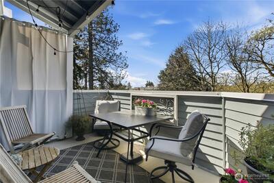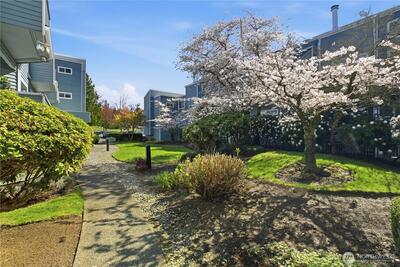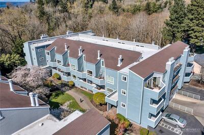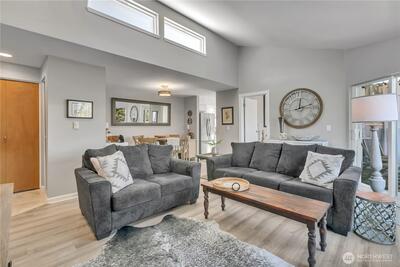 This newly updated top-floor corner unit is in the coveted Spyglass Condominiums! Nestled in downtown Des Moines, you are just moments away from the marina, delectable restaurants, and fantastic retail therapy. Updates include plank flooring in the bedrooms, living, and dining areas, and fresh paint. Newer appliances, including full-size washer and dryer! With two bedrooms and soaring vaulted ceilings, this condo is bathed in abundant natural light. Cozy up by the warm wood-burning fireplace or bask in the glorious sunshine on your covered balcony/deck overlooking the greenbelt. Enjoy the peace of mind provided by this secure building and parking garage. Your assigned parking space is right at the bottom of the stairs.