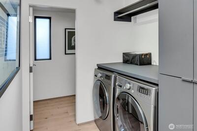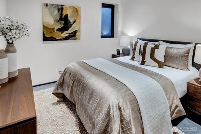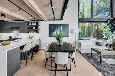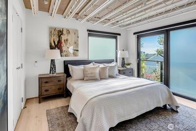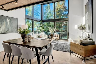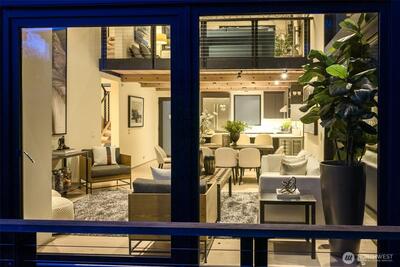 Experience the epitome of Northwest modernism at Lee Street Lofts, a masterpiece by renowned designer Bill Parks. This 3-bedroom, 4-bath residence is a hand-forged work of art, seamlessly blending steel, glass, and concrete with rugged yet refined design. The home’s sawtooth architecture creates striking perspectives throughout, while abundant natural light dances across the flexible living spaces. The crown jewel of the home is the expansive great room, framed by a dramatic 2-story window wall and flowing seamlessly from the chef’s kitchen. Outfitted with top-tier Wolf and Bosch appliances, an expansive island with seating, and a wine fridge, the kitchen is a dream for hosting unforgettable gatherings. This impressive space invites both grand entertaining and intimate evenings, bathed in natural light by day and offering a cozy ambiance under the stars by night. Relax in the spa-like primary suite w/ walk-in closet & soaking tub. The flexible loft space and intentional bed/bath co
