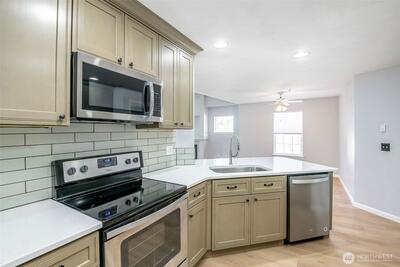 Welcome home to this beautifully updated & meticulously maintained 2-bedroom, 2-bath condo in the heart of DuPont! Gorgeous light & bright condo with all new flooring throughout & offers a fresh, modern feel from the moment you step inside. The remodeled kitchen shines with stylish finishes, ample cabinetry, and a functional layout perfect for everyday living and entertaining. Enjoy an open-concept living space & large secondary bedroom! Condo has an attached 2-car tandem garage, providing plenty of room for parking, storage, or hobbies. Conveniently located near parks, trails, JBLM, and easy freeway access, this move-in-ready condo combines comfort, style, and location. Dupont has so much to offer - just a short walk from the town center, trails, Clock Tower Park, playgrounds, and local schools! Don't miss this one!
