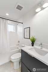 Discover elevated modern living in this expertly built new home by Jake’sD, quietly situated on a peaceful dead-end street in Rose Hill. Designed with both sophistication and functionality in mind, this 3-bedroom, 2.75-bath residence offers a light-filled, open-concept layout that fits today’s lifestyle. Northwest Contemporary design elements shine throughout, enhanced by high-end finishes and expansive windows that bring in abundant natural light. At the heart of the main level is a stunning chef’s kitchen, complete with a spacious island and top-tier appliances—perfect for entertaining or everyday living. Upstairs, the spacious primary suite offers a true escape, featuring a walk-in closet and a luxurious, spa-like bathroom. The top floor adds flexibility with a bonus room and its own half bath, ideal for a media room, office, or home gym. Enjoy outdoor living in the fully fenced yard with curated landscaping—great for hosting or unwinding in privacy. Energy-efficient solar