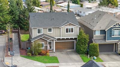 This 4-bedroom with Office and 2.5-bath home offers the perfect balance of privacy and connection, with neighborhood events and a community playground that create a true sense of belonging. Beautifully maintained corner-lot home in a peaceful, well-kept HOA community known for its pride of ownership and welcoming atmosphere. Step inside to comfortable, move-in-ready living featuring an efficient A/C heat pump for year-round climate control, along with updated carpet and interior paint that provide a clean, refreshed feel. The functional layout offers excellent flow with spacious living areas, ideal for everyday living, working from home, and entertaining guests. Positioned on a desirable corner lot, the home enjoys added privacy and abundant natural light throughout. Whether you're hosting gatherings or relaxing in a quiet evening setting, this home delivers flexibility, comfort, and lifestyle. Conveniently located with easy access to I-5 and Joint Base Lewis-McChord, commuti