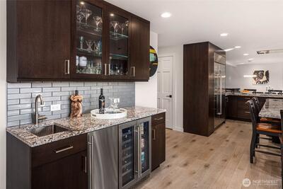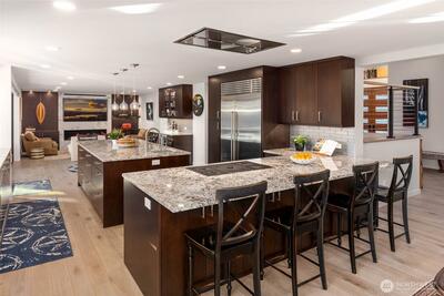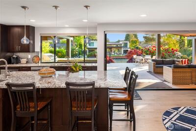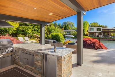 An exceptional opportunity to own a premier canal-front residence in the highly coveted Newport Shores community, offering protected deep-water moorage and an unparalleled connection to waterfront living with direct access to Lake Washington. Perfectly positioned with sought-after southwest exposure, this home captures abundant natural light. Thoughtfully designed to blend modern sophistication with effortless comfort, the residence showcases refined interiors, clean architectural lines, and timeless, high-quality finishes throughout. The 15’ LaCantina multi-slide door frame tranquil water views, while open-concept living spaces create a seamless transition between indoor and outdoor environments. The main living areas are designed for both elevated entertaining and everyday living, flowing gracefully to an impressive outdoor retreat at the water’s edge. Here, a covered living space features a built-in kitchen and fireplace—ideal for year-round enjoyment—whether hosting gatheri