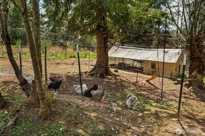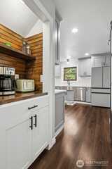 Welcome to the one-of-a-kind “Funky Farm” — a truly captivating custom bungalow that feels like your own private retreat, yet keeps you close to everything Lacey has to offer. Set on 5.96 peaceful acres, this architecturally inspired home blends personality, function, and comfort in all the right ways. The inviting covered front porch sets the tone for what’s inside — a thoughtfully designed home where every square foot is put to good use. Recent updates provide peace of mind and modern style. The kitchen is both stylish and functional, featuring stone counters, brand-new soft-close cabinets, large pantry with barn door, new appliances including 8-burner cooktop, wine fridge, and a convenient butler’s pantry with cozy dining nook nearby — perfect for everyday living or entertaining. The main floor primary suite offers ease and privacy. Main floor radiant heat floors. Upstairs, you’ll find spacious secondary bedrooms, charming upper-level porches, and a fully remodeled b