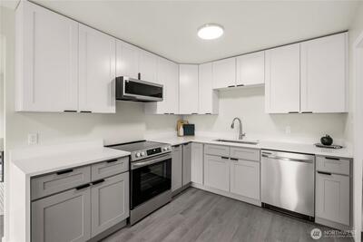 Honey stop the car! In the heart of South Tacoma. This property has been completely redone and is ready for you to call it home. Designer paint on the outside and stunning front door greets you. All new vinyl planked flooring throughout for easy clean up. New kitchen with generous eating space. All new cabinets, quartz counters, stainless steel appliances. New light fixtures throughout. Master has an en-suite 3/4 bathroom. Main bath has been updated with glass bowl sink. New doors inside and out. Generous sized utility room with door to backyard and patio. Detached garage has a new metal roof, garage door with opener that opens to the alley. Plenty of parking in the alley, garage, and street. Fully fenced with gates. Close to Mann Elementary school.